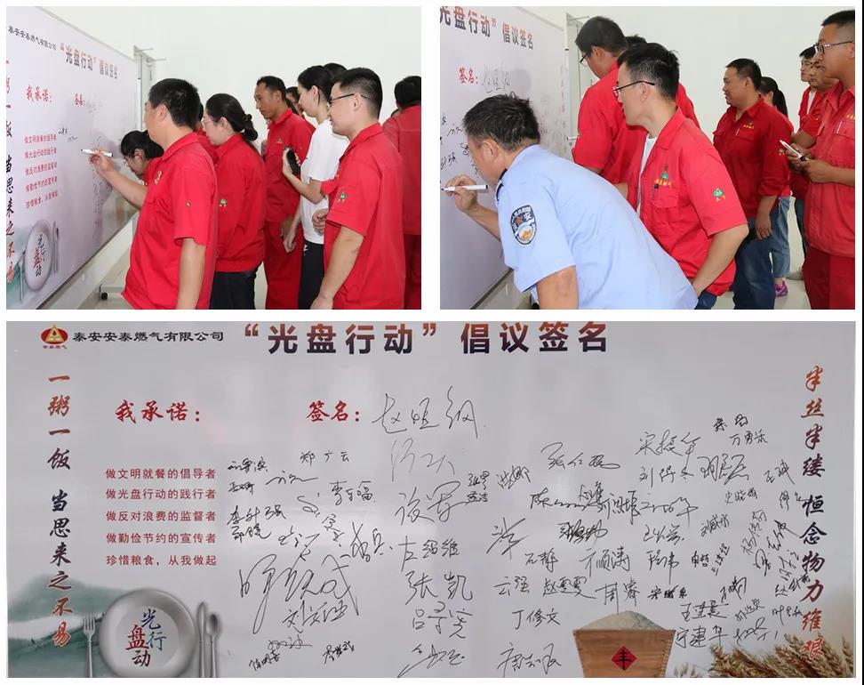 为深入贯彻落实习近平总书记关于制止餐饮浪费行为的重要指示,大力弘扬中华民族勤俭节约的优良传统,9月25日,安泰燃气在公司餐厅组织开展“光盘行动”倡议签名活动,公司70余名干部职工参与活动。